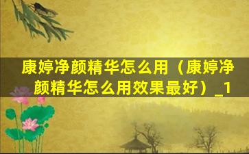 康婷净颜精华怎么用(康婷净颜精华怎么用效果最好)