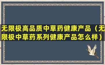 无限极高品质中草药健康产品(无限极中草药系列健康产品怎么样)
