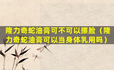 隆力奇蛇油膏可不可以擦脸(隆力奇蛇油膏可以当身体乳用吗)