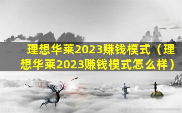 理想华莱2023赚钱模式(理想华莱2023赚钱模式怎么样)