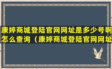 康婷商城登陆官网网址是多少号啊怎么查询(康婷商城登陆官网网址是多少号啊怎么查询订单)